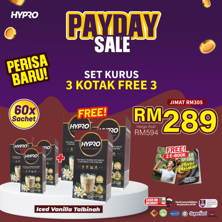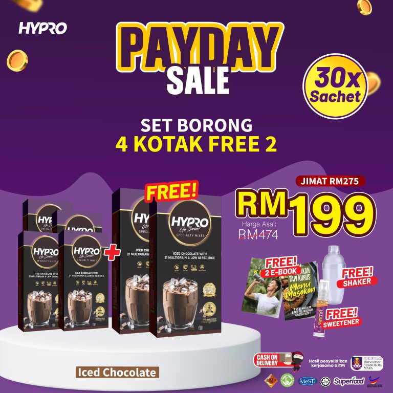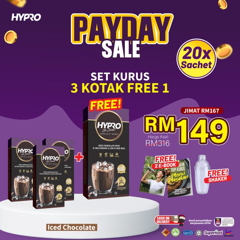 Sebab itu, kami bagi jaminan. Supaya takda siapa pun rugi dalam mencuba produk HYPRO. Cubalah produk ni sekarang. Sekiranya… selepas dah amalkan selama 3 bulan. Kalau tak suka dengan kesan. Rasa tak Sedap. Tak suka kotak. Tak suka bau. Tak suka texture. Tak suka dengan apa jua sebab. Pulangkan balik.